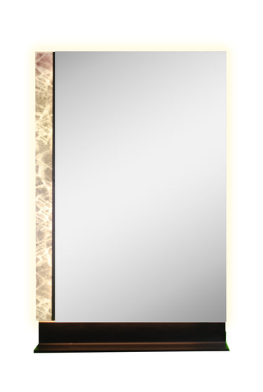 The 16391 Backlit Mirror features a duratran with a printed image and a shelf at the bottom. It comes with a stunning powder coated black finish for a modern look. Enjoy exceptional clarity and crispness with the high quality mirror, perfect for any home or professional setting.