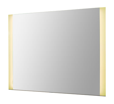 Custom Lighted Mirror with two bands of vertical frosted light and .25" polished chrome ban strip at bottom to protect mirror edge.