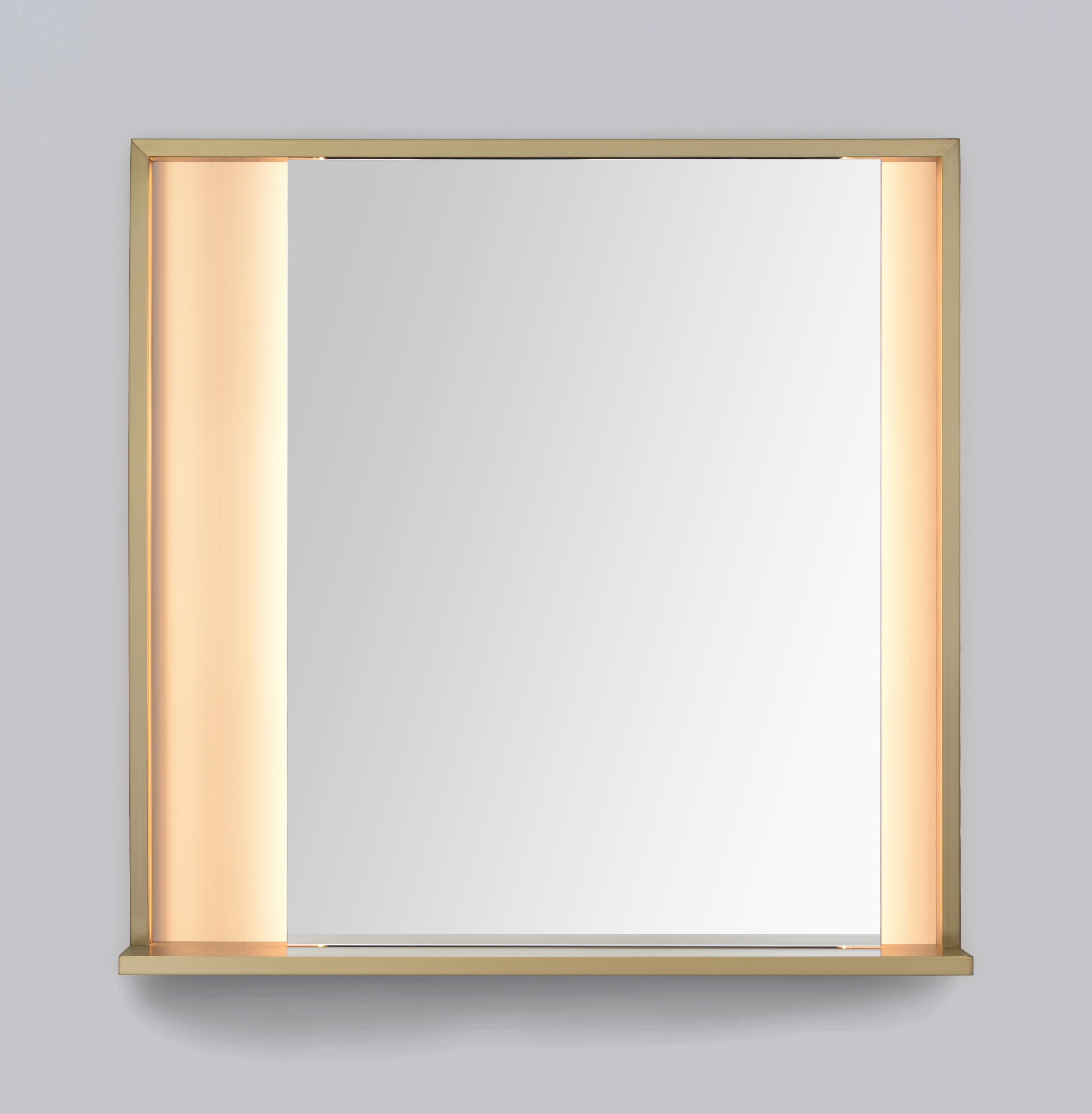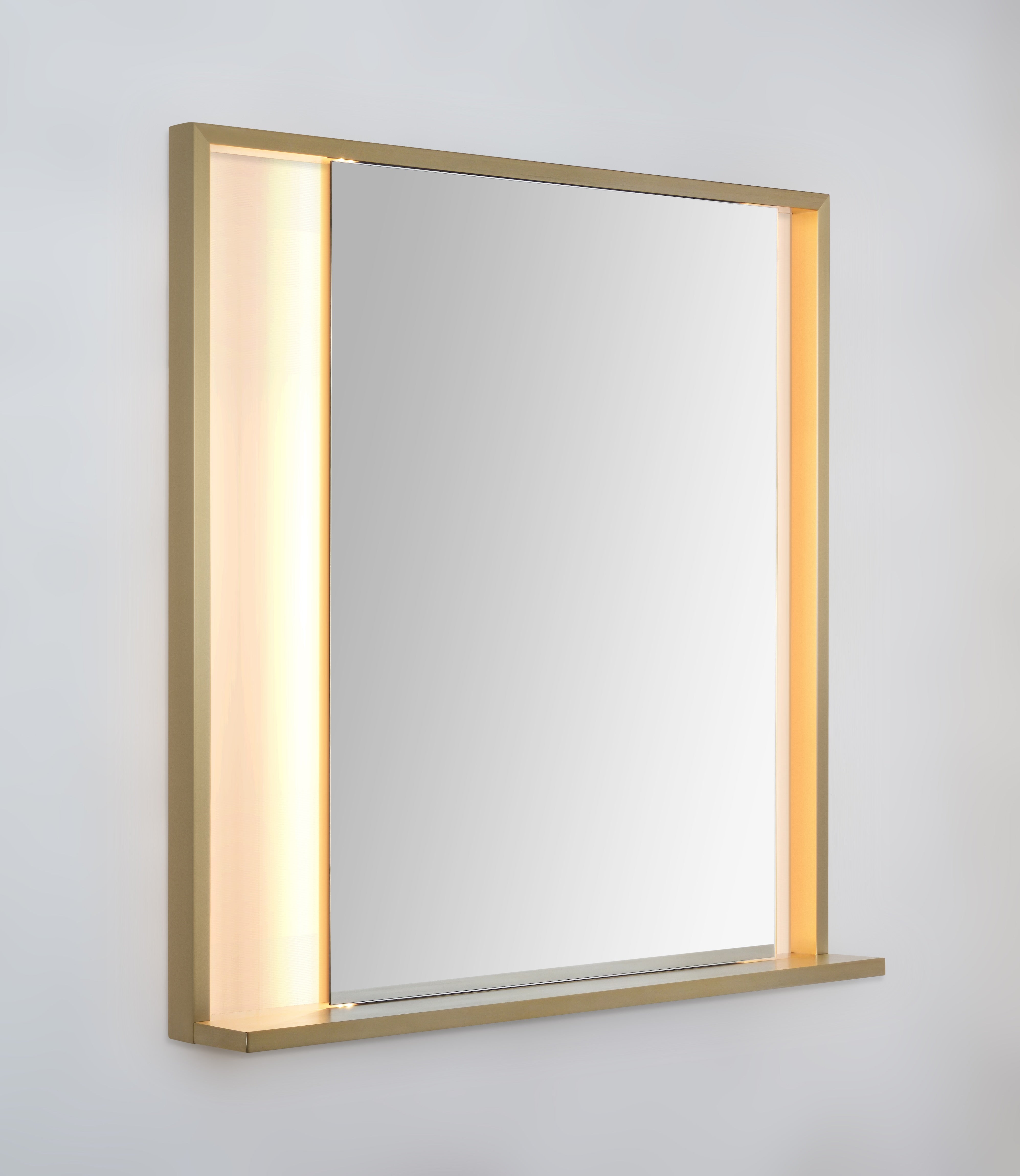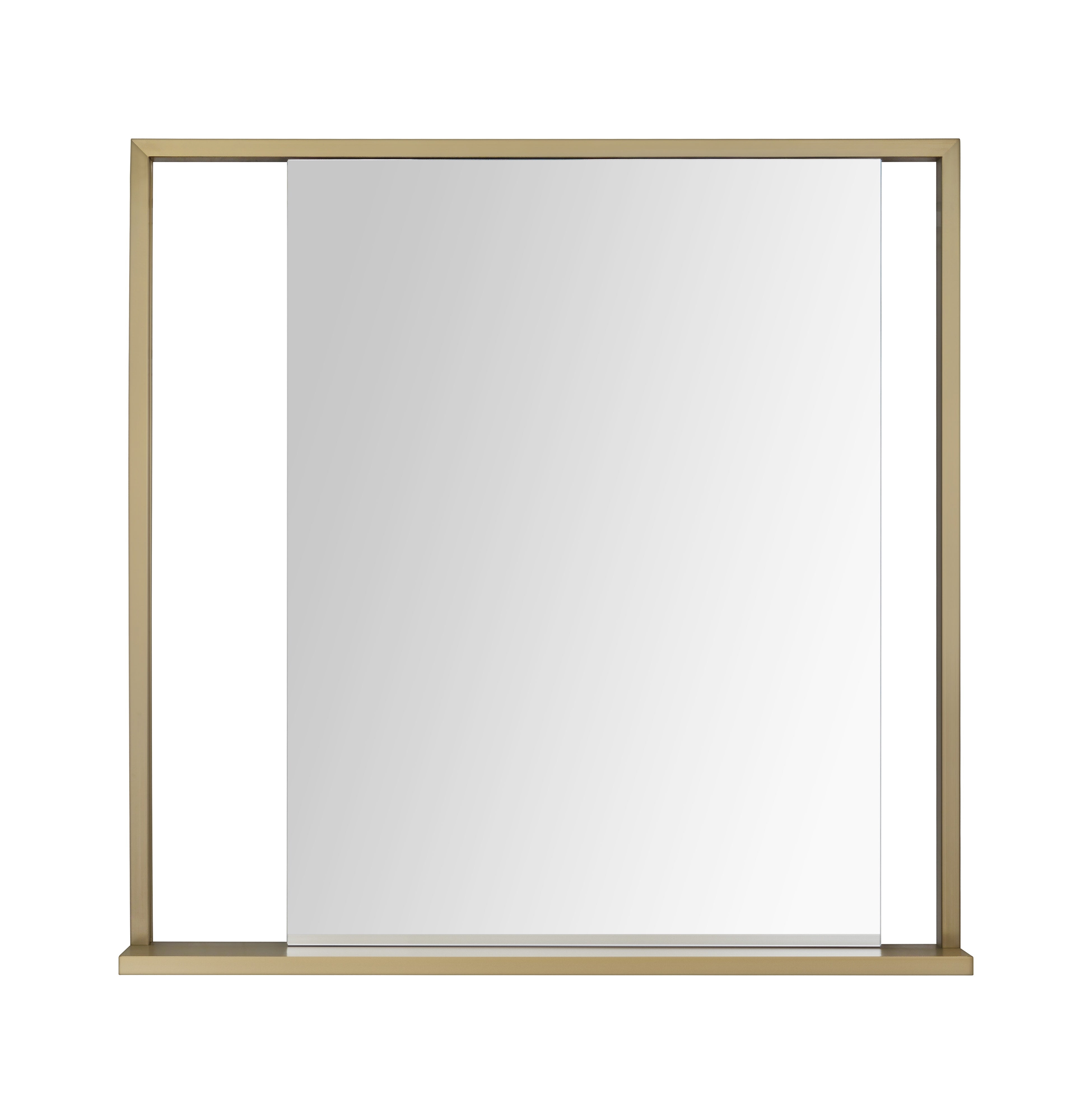 This mirror features a square shape and a gold frame, providing a sleek and sophisticated look. The mirror is also lit, allowing for optimal lighting and visibility. Upgrade your space with this stylish and functional addition.