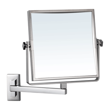 Square Wall mounted Double sided make up Mirror makes it a wonderful piece of décor for any bathroom. Double sided mirror with 5x magnification on one side.(3x magnification available). Chrome Finish.
