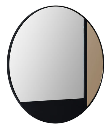 Round Metal Framed Mirror in a painted black finish with Clear Silvered Mirror and our C-24 Quartz colored mirrors finish off this beautiful decorative piece