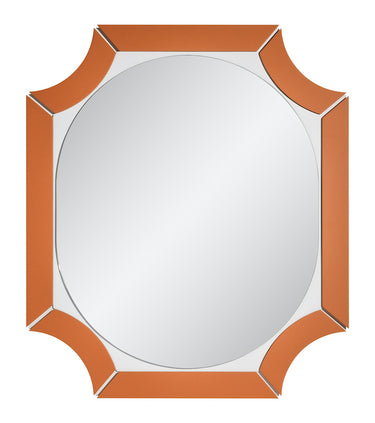 Framed mirror with custom orange finish.