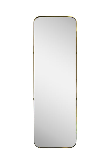 The 16363 has a full-length mirror framed with metal and finished in a stylish gold plating. Its rounded corners and hooks make it both stylish and practical. Upgrade your space with this chic and modern mirror.