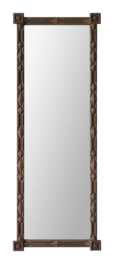 Crafted with a wood frame and a stained finish, this rectangular mirror features squared accents at the corners for a touch of modern elegance.