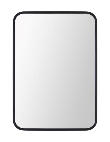 This product, 16562, features a sturdy metal frame with a modern Powdercoat matte black finish, as well as rounded corners for a sleek design. It also includes tempered glass shelving located behind the frame for added durability and functionality.