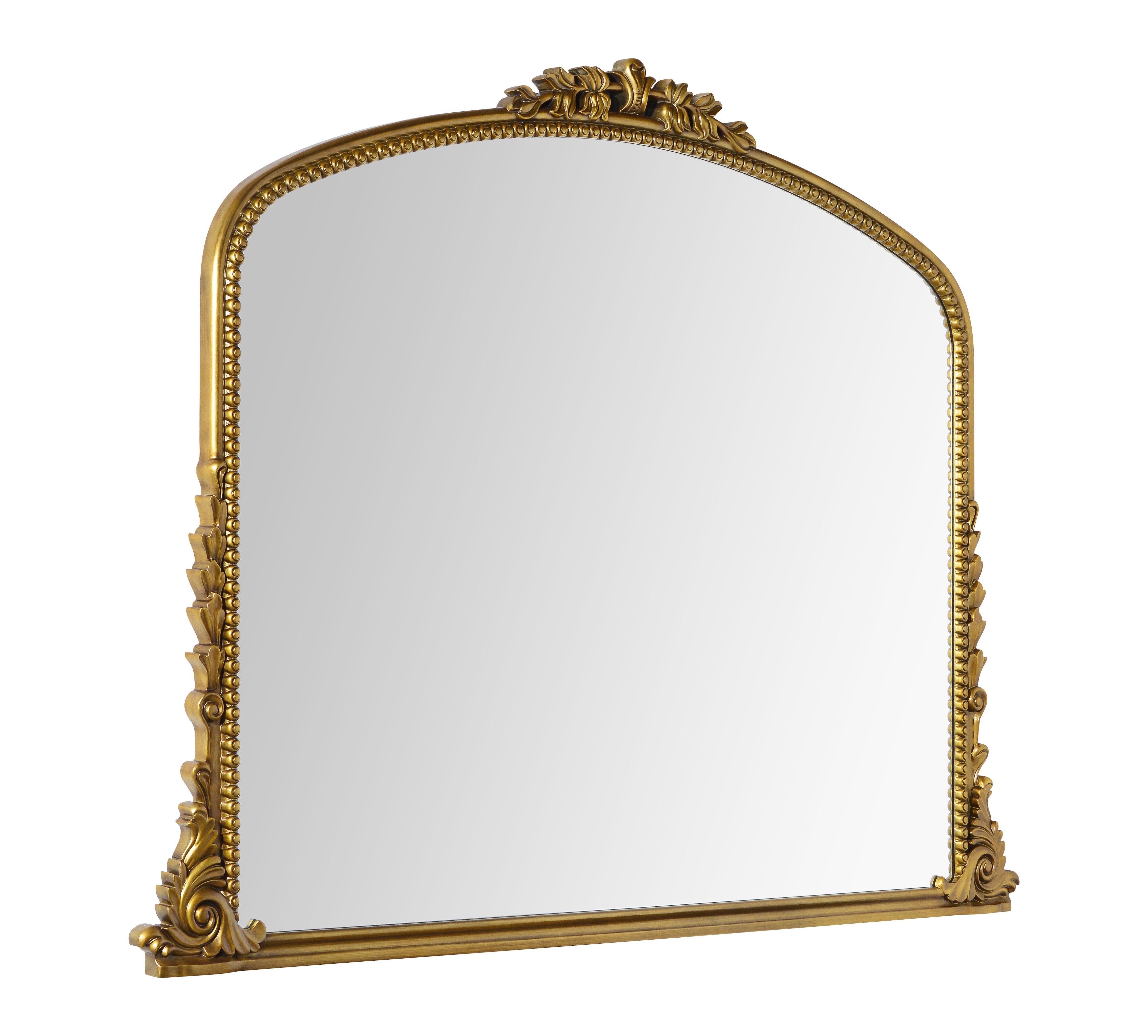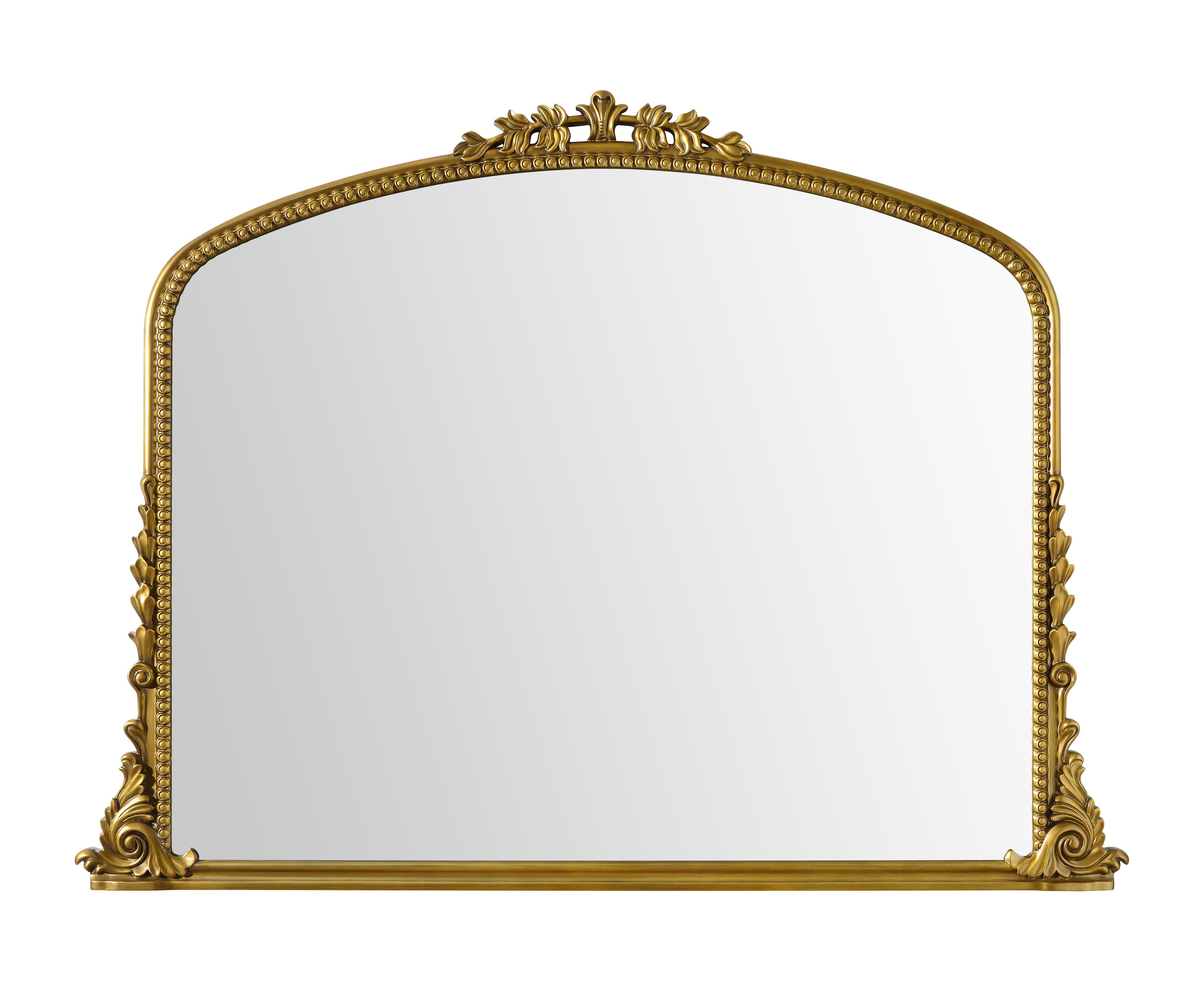 This Euri Arch Vintage Wall Mirror boasts a beautiful and unique gold frame with intricate patterns along the top and sides. Its sophisticated design adds a touch of elegance to any room, while its reflective surface offers the perfect opportunity for checking your outfit before heading out.