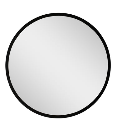 Round metal mirror in black lacquered finish. This 30070 mirror is ideal for stylish bathrooms and bedrooms. Crafted from durable metal, it features a matte black finish and a classic round shape for an elegant look. Its perfect size makes it a great addition to any wall.
