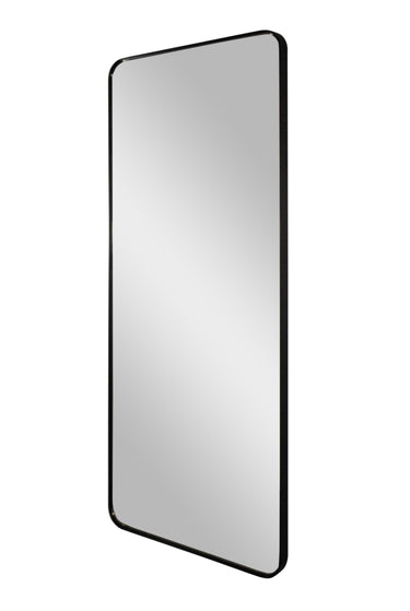 full length mirror with radius corners shown in matte black finish on metal.