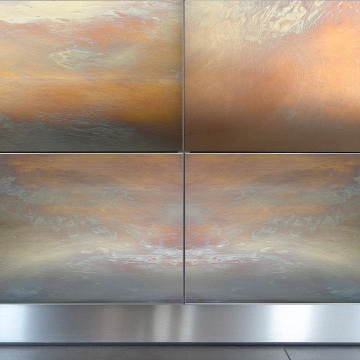 The mix of brass, yellow, blue, and grey tones creates a unique and eye-catching look, while the light polished surface adds a touch of elegance. Upgrade your space with this stylish and versatile option.