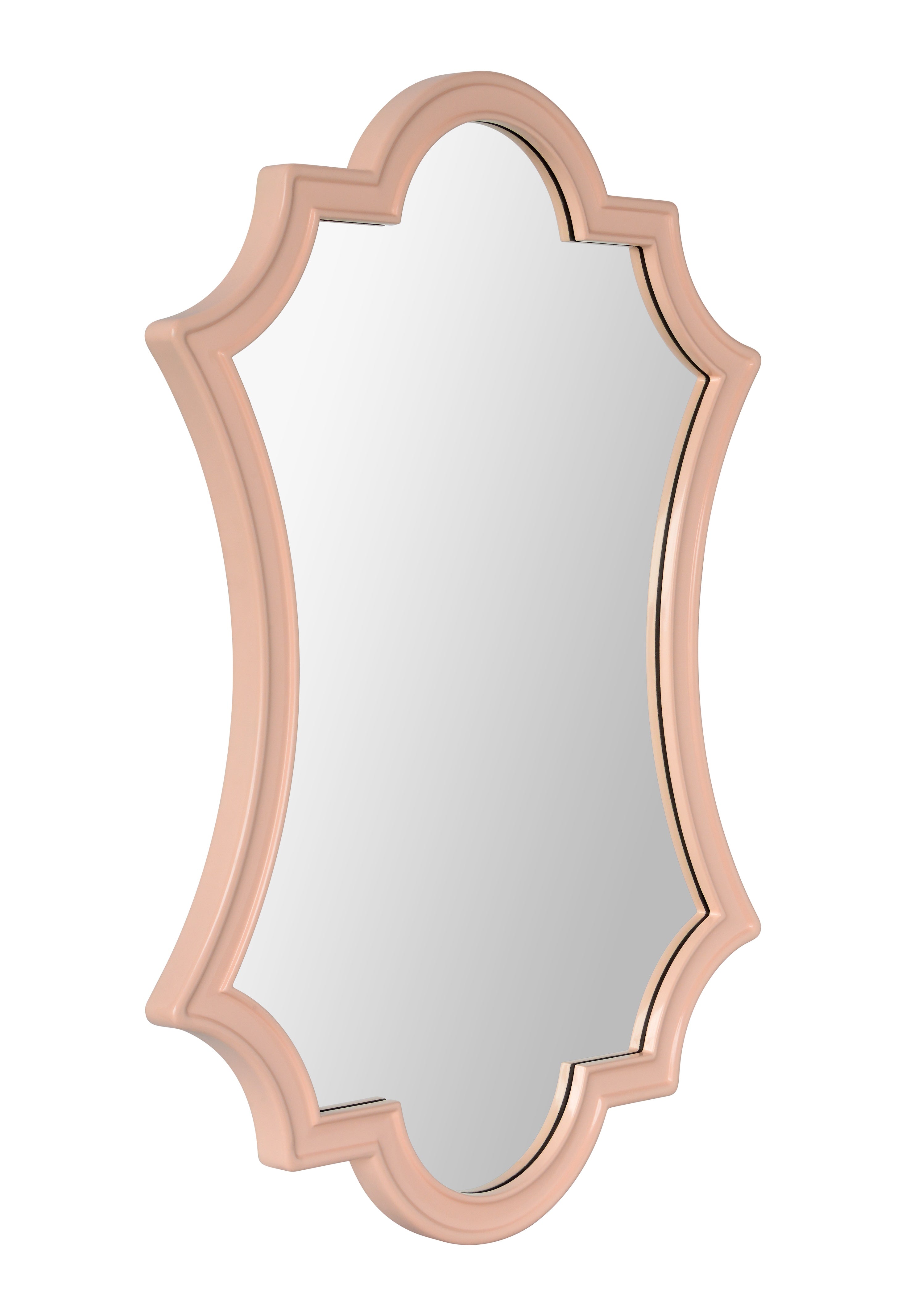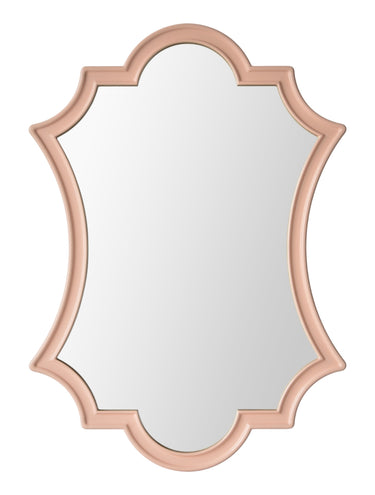 This uniquely shaped mirror features a sleek metal frame that combines modern design with durability. Its distinctive form adds a sophisticated focal point to any room, while the sturdy metal construction ensures long-lasting quality.