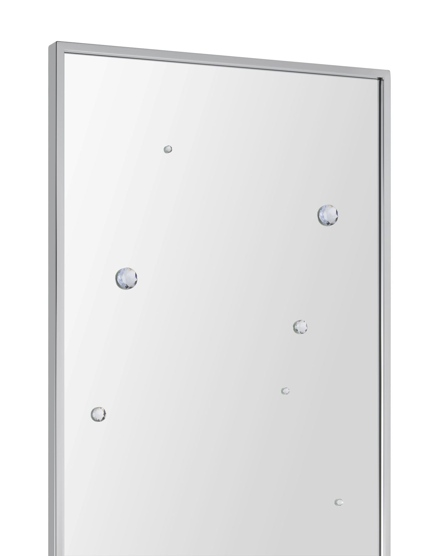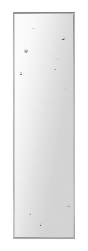 This stunning silver frame mirror features an elegant design enhanced by carefully embedded crystals that catch and reflect light beautifully throughout any room. The full-length silhouette provides practical functionality while the crystal accents elevate it to a statement piece.