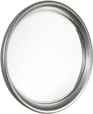 Circular mirror with silver leaf finish.