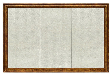 Framed antique multi-panel mirror. Frame shown in distressed bronze. Antique mirror selected from our antique mirror collection