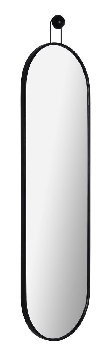 This 16229 full length pill-shaped mirror features a decorative hook and sleek black powder-coated finish. Perfect for adding a touch of style to any room, while also providing a full-length reflection for your convenience and functionality.