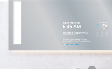 Smarti is your touch free smart mirror! Guests may order amenities or ask Alexa anything.